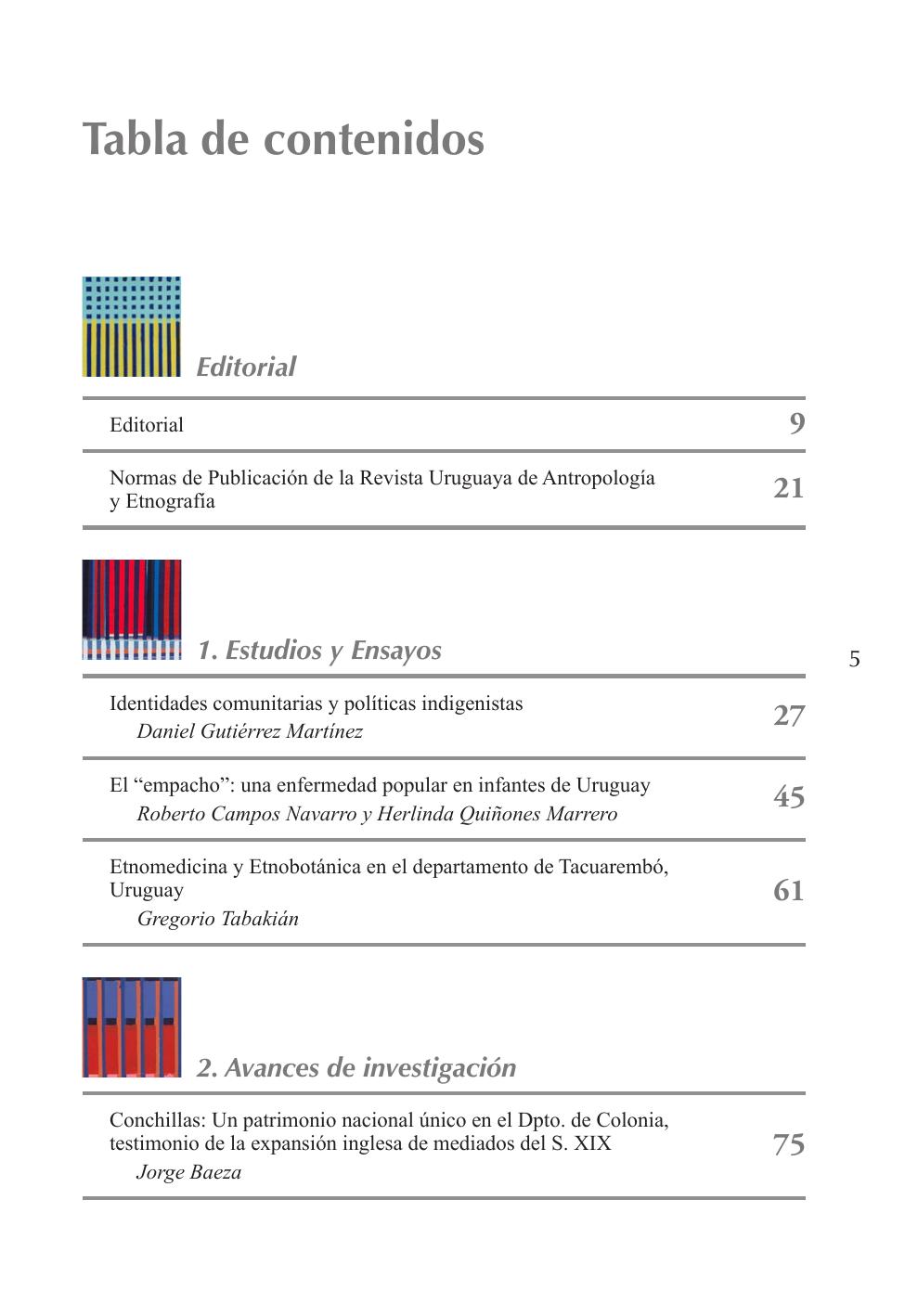 Ribero, G. (2017). Tabla de Contenidos. Revista Uruguaya De Antropología Y Etnografía, 2(2), 5–7. https://doi.org/10.29112/ruae.v2i2.25